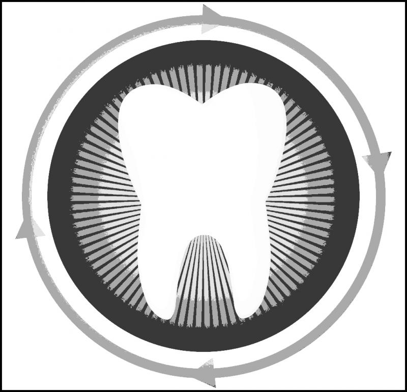 Above: 130x oblique view of the interior of the tooth in sagittal plane.